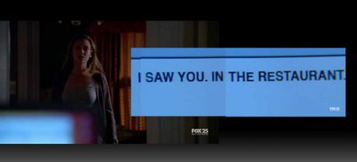 Here also are a couple of screen grabs from an earlier Fringe episode. I’m always interested in the craft of storytelling, especially the smaller details, how a moment was put together or communicated. In the scene below FBI agent Olivia Dunham returns home after a disturbing scene where she believes has seen her supposedly dead lover John Scott. Back at home she has a new email that appears to be from him.